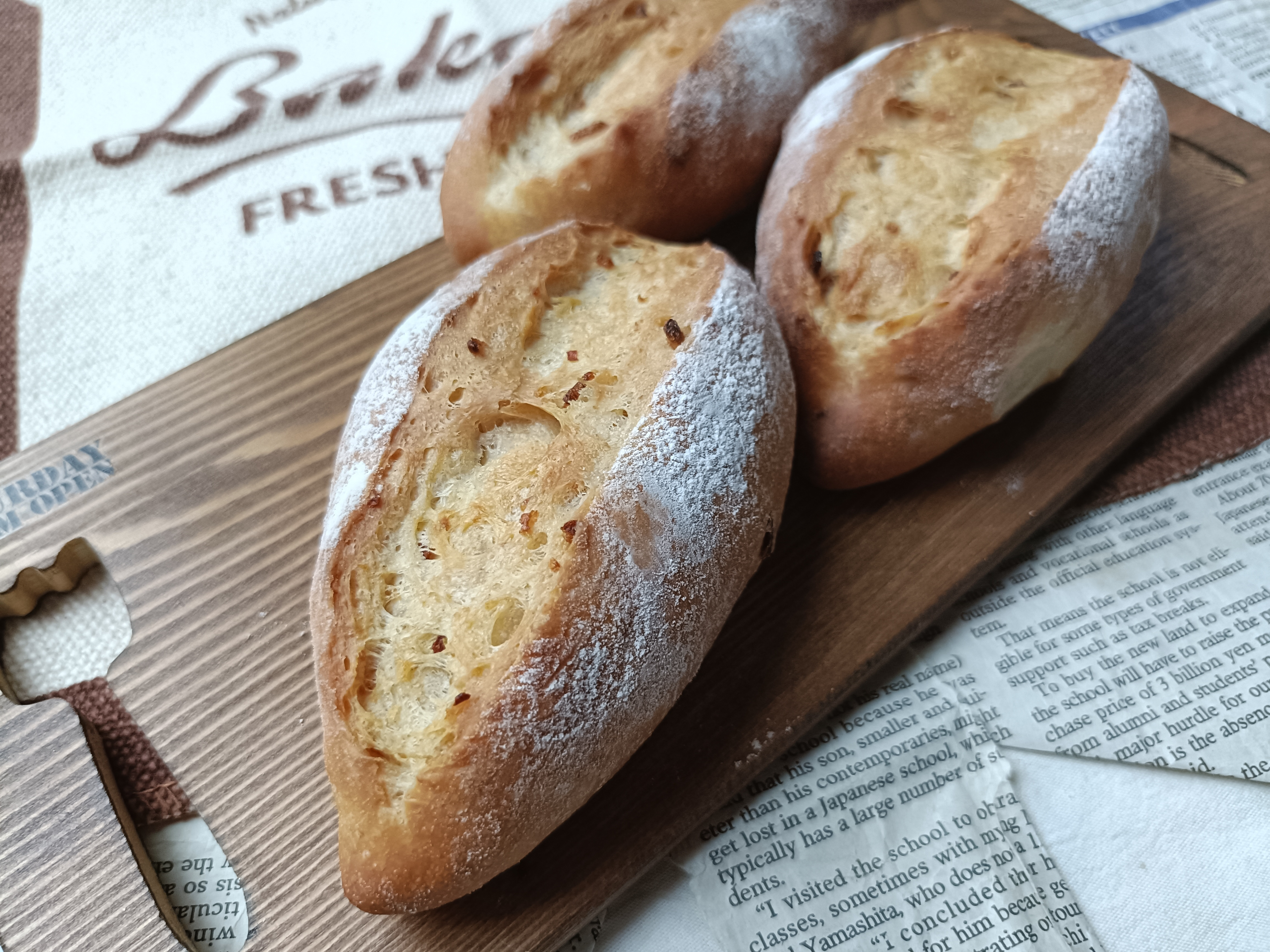 ハートパンと同じ生地で、フライドオニオンを混ぜ込んだシンプルなパンを作ります。